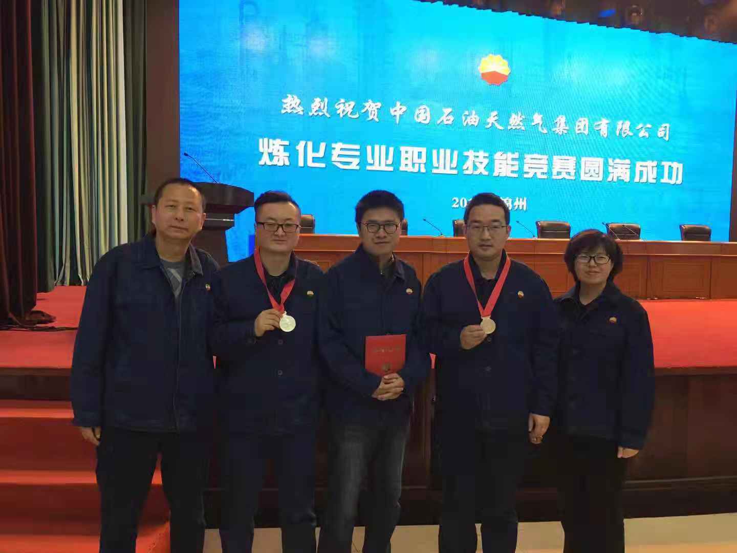 2018年中国石油天然气集团公司炼油与化工职业技能大赛属国家级二级竟赛。兰州石化公司参赛队员以过硬的专业技能和综合素质取得了优异的成绩,在炼油班组长竞赛项目获得团体第一名李峰峰、高国宁获得个人金牌宋斌获得个人银牌;催化裂化技能竞赛项目杨永纳获催化裂化项目个人金牌;在催化重整竞赛项目王南、陈兴赟获得个人银牌。6名获奖者均公司毕业生,彰显了公司办学实力,为公司争得了荣誉。